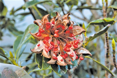 蔡 磊摄 华盖木裂开的果实。 孙卫邦摄