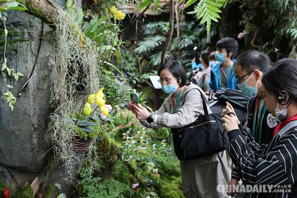 10月14日,COP15参会记者在“扶荔宫”参观采访。(中国日报记者 冯永斌 摄) 中国日报昆明10月14日电(记者 冯永斌)2021年10月14日,联合国《生物多样性公约》第十五次缔约方大会(COP15)参会记者在“扶荔宫”参观采访。中科院昆明植物研究所昆明植物园“扶荔宫”生物多样性体验园,是此次会议生物多样性室外展览展示项目之一。