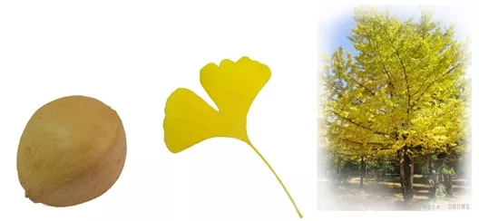 白果、银杏叶、银杏植株(从左到右) 银杏 (Ginkgo biloba)为银杏科(Ginkgoaceae)植物,是现存种子植物中最古老的孑遗植物,早在2.7亿年前就已出现。50万年前,随着第四纪冰期的到来,其它银杏种类都已灭绝,只留存了现今的一种,且其野生居群目前仅存在于我国南部地区,故被称为植物中的“活化石”。但因银杏树形优美、寿命长、遮荫好,可作庇荫植物,叶片独特美丽,可作观赏植物,故后被其它国家大量引种,但基因测序显示,它们都源自我国的浙江天目山野生居群。 银杏生长较慢,从栽种到结果需要20多年,40年后才能大量结果,因此又名“公孙树”,有“公种而孙得食”的意思。 成熟银杏种子的外面为一层肉质的黄色或橙色外种皮,掉落地面腐烂后,会发出一种类似黄油酸败后产生的难闻味道,这曾为吸引恐龙前来取食的强烈信号,却为现代动物和人类所不喜。去除外层种皮后,就露出了由白色骨质中种皮包裹的种子,俗称白果,香糯可口,为人们所喜食。但由于其内含有氢氰酸毒素,毒性较强,故不宜多吃,更不宜生吃。