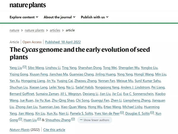 近日,科学家完成苏铁基因组解析工作,首次发布苏铁完整基因组图谱,这意味着种子植物基因组演化研究中的最后一块“拼图”已顺利完成。4月18日,《自然·植物》(Nature Plants)以封面文章发表该研究成果。据悉,该研究成果数据公开共享,全球科学家可免费下载使用。 苏铁是地球上现存最古老的种子植物,是著名的“活化石”植物。它的起源可以追溯到大约3亿年前,在侏罗纪时代达到最盛期,曾与恐龙一起称霸整个地球。 苏铁经历过两次大灭绝、数轮冰川期等诸多考验,在这个星球上存活了亿万年,如今却已处于濒危边缘。目前,苏铁被世界自然保护联盟红色名录列为极度濒危物种,也是我国国家一级重点保护植物。2008年,中国政府主导完成的第一个“珍稀濒危植物回归”项目,便是关于苏铁保护。 据了解,作为最原始的种子植物,苏铁被誉为“植物界的大熊猫”。然而,苏铁的基因组较大,结构复杂,为科学研究工作增添不少难度。现存最原始种子植物中,仅苏铁分支一直缺少完整的基因组图谱。 2017年,深圳华大生命科学研究院(以下简称“华大研究院”)、深圳市仙湖植物园、中科院昆明植物所联合发起苏铁基因组项目。华大研究院刘欢研究员介绍,该项目选取苏铁类最基部的类群、同时也是中国特有的古老残遗种——攀枝花苏铁作为测序材料,吸引了植物学领域国际顶级专家加入,最终由国内外22个机构,60多名科学家共同参与完成,研究成果数据公开共享,全球科学家可免费下载使用。