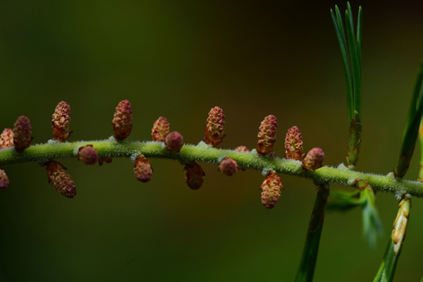近日,极小种群野生植物毛枝五针松迁地保护种群在中国科学院昆明植物研究所昆明植物园极小种群野生植物专类园进入“盛花期”,意味着毛枝五针松迁地保护基本成功。 昆明植物园毛枝五针松球花正盛 毛枝五针松,又称云南五针松、滇南松,云南特有种,为松科松属单维管束松亚属植物,分布区极狭窄,数量极少,零星分布于云南省文山州的麻栗坡、西畴、马关等几个县的石灰岩地区,疏生不成林。由于森林破坏严重,分布区内许多山岭已经光秃,仅在悬崖峭壁上偶有残存。该区域总面积高达6616平方千米,但毛枝五针松的数量仅有为358株,成年的个体才200余株,每个亚种群大小不超过20株。其中,麻栗坡县是毛枝五针松的集中分布区,有335株;西畴和马关县为零星分布,分别有13株和10株。因此,毛枝五针松被列为1999年国家II级重点保护野生植物和亟待拯救保护的国家120种极小种群野生植物之一。