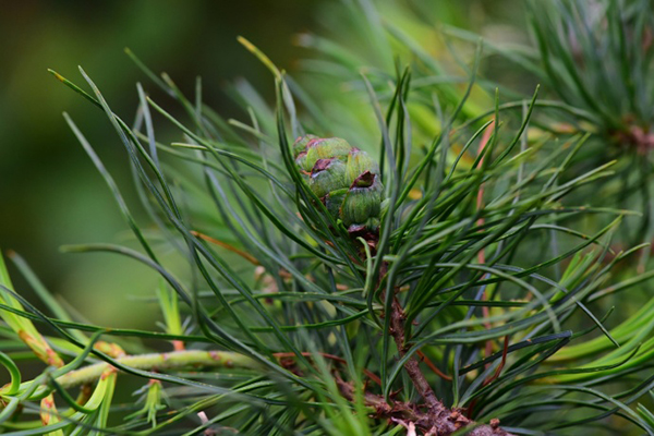 2022的球果 毛枝五针松短而微内弯的针叶密集生于小枝上,好似一团团蓬松的毛发附于枝干上,因此得名。针叶腹面两侧各有5-8条气孔线,观赏性较高。在我国的单维管束松亚属中,多以五针一束为特点,如华山松、红松、乔松、巧家五针松等。其中,乔松的针叶最长(达20厘米),毛枝五针松的针叶最短(仅2.5-6厘米)。