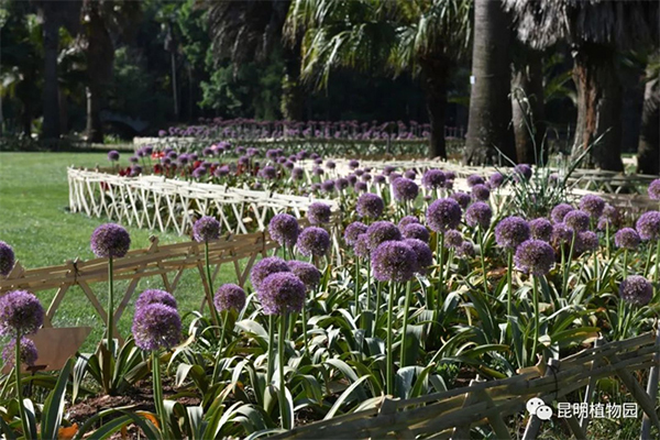 5月1日,以“郁郁葱茏荟春城 生物多样萃华夏”为主题的中国科学院昆明植物研究所昆明植物园第四届葱属植物文化艺术展,即将开展。本次葱展仍然以昆明植物园中乌全球葱园(昆明中心)为主办地点,为期一个月。期间,约20个品种、5000株观赏葱花将盛放迎客,还有音乐会、科普展、摄影展等精彩的活动等你来参与。 赏花 约20个品种5000株观赏葱花进入盛花初期 盛夏之初,绿叶中鲜有花朵的陪伴,而美丽的葱花刚好在此时补上夏天的色彩。经过昆明植物园园艺师4个月的精心培育呵护和布置规划,葱园的葱属植物长势良好,现在已逐步进入盛花初期,预计将在5月中旬达到最佳观赏期,约20个品种、5000株观赏葱花一齐开放。此外,本次葱展还将展示许多种类的其他葱属(Allium)植物,这个家族的成员共同构建了郁郁葱葱的世界,不仅秀色可餐,也可飘香十里。