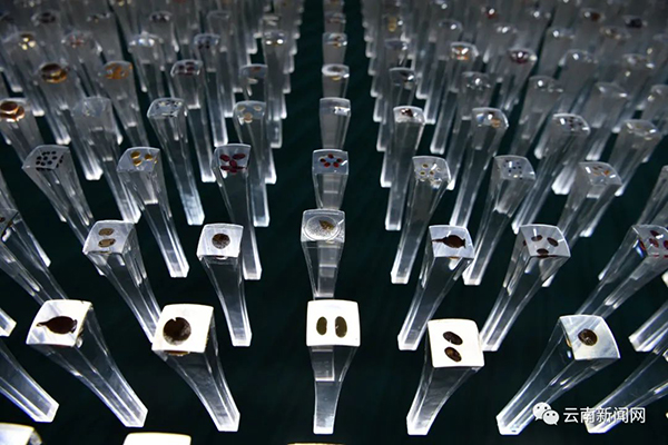 4月29日,中科院昆明植物研究所“扶荔宫”温室群内种子博物馆的种子墙。 本组图片 中新社记者 刘冉阳 摄