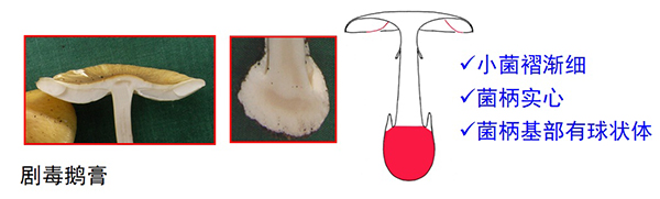 无毒鹅膏与剧毒鹅膏的形态特点 有毒鹅膏和无毒鹅膏在形态上有细微差别,无毒鹅膏小菌褶平截、菌柄中空、菌柄基部无球状体;而有毒鹅膏小菌褶渐细、菌柄实心、菌柄基部有球状体。 (人民日报客户端 2022年6月17日) 来源:https://wap.peopleapp.com/article/6747044/6618220 |