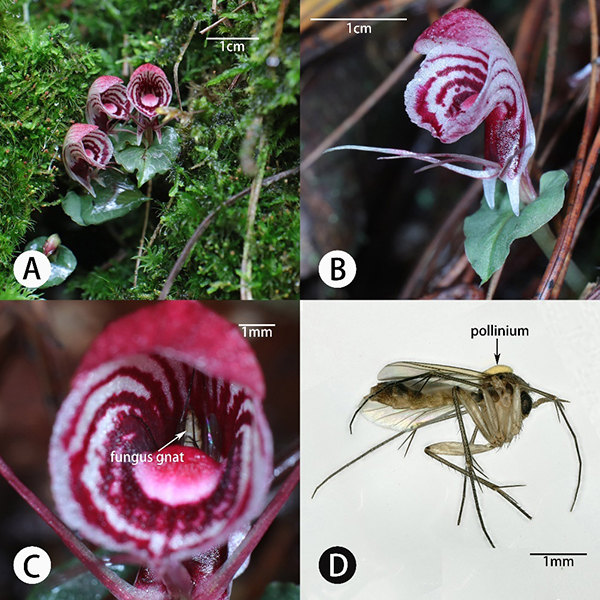 昆明植物研究所对中国热带北缘分布的兰科植物铠兰属传粉生态学的研究取得了新进展,以韩周东硕士研究生为论文第一作者,王红研究员和任宗昕副研究员为论文共同通讯作者的研究成果以“Observations on the pollinationand breeding systems of two Corybas species(Diurideae; Orchidaceae) by fungus gnats (Mycetophilidae) in southwestern Yunnan, China”为题发表于植物学专业领域期刊BMC Plant Biology上。 据介绍,兰科植物极高的物种多样性的形成和维持受到多种因素的驱动,其中最重要的驱动因子为各式各样令人惊叹的传粉机制。在双尾兰族中,存在一些种类利用体长2-5 mm的一些以真菌为食或在真菌上产卵的蝇类或蕈蚊作为传粉者。我们通常所说的蕈蚊其实是对包括至少6个科的统称。这类兰花的特点是具有鱼腥味,而且唇上具有腮状纹可能拟态真菌,例如一些小龙兰属的兰花。