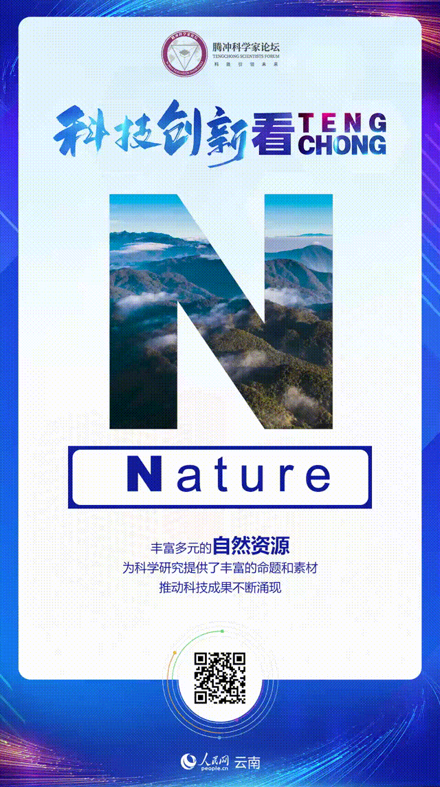 编者按:提升科技面向南亚东南亚的影响力和辐射力,是云南建设面向南亚东南亚辐射中心的重要内容。在中国科学院、中国工程院指导下,清华大学、北京大学、南开大学支持下,云南省人民政府、中国科学技术协会从2022年起,在云南省腾冲市举办腾冲科学家论坛,搭建先进学术思想交流平台、政产学研互动平台、科技成果转化平台、中国与南亚东南亚科技合作平台,打造国际化、高端化、特色化的“科技达沃斯”论坛。 2022腾冲科学家论坛将于12月1日开幕。即日起,人民网云南频道推出“科技创新看TENGCHONG”专题报道,用举办地“腾冲”的9个拼音字母“T-E-N-G-C-H-O-N-G”,全面展示党的十八大以来,云南在科技创新、科技入滇、科技支撑产业转型升级和经济社会发展等方面取得的成就,展望云南“十四五”期间科技创新驱动高质量发展的美好愿景。 第三个字母“N”即是“Nature”,以腾冲的自然为切入点,展现云南独特的自然环境和丰富的自然资源助力科学事业发展的广阔前景。