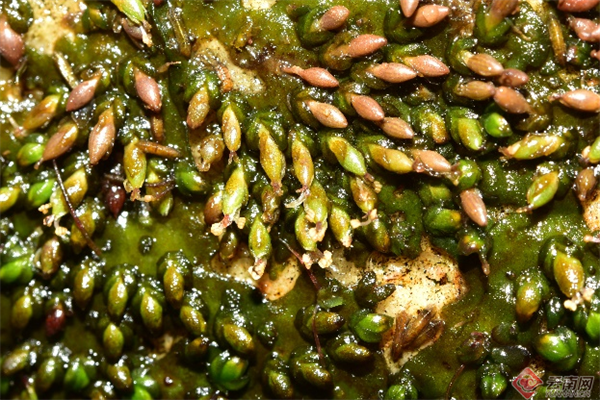 清代诗人袁枚有首咏物小诗《苔》,其中一句是“苔花如米小,也学牡丹开”。苔藓植物属于最低等的高等植物,不具有真正的花结构,但是如果拿这句诗来描述会开花的种子植物的水苔花倒是更加贴切。它的整个花才约1–2毫米,花被片退化成极小的鳞片状,因此在野外如果不是大面积开花,很难发现它在开花。水苔花的根呈叶状体状,绿色,靠吸器紧贴于水中的石头上,形似地衣,因而也称之为水石衣。显然,为了在急流中安家落户,水苔花利用发达的根系紧紧地贴在流水的石头上,并吸收流水中的营养物质。另外,很有意思的现象是水苔花的花常常会随着水位的下降依次开花,但长期暴露于空气中的植株的根茎叶通常会凋亡脱落,但果枝可以借助吸器保存更久。