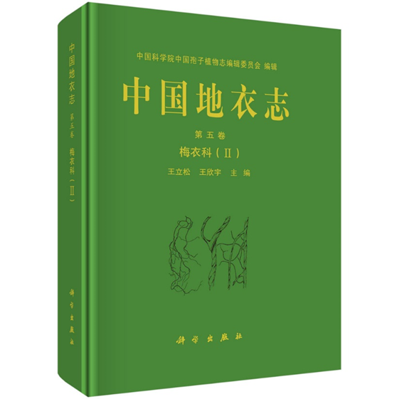 《中国地衣志 第五卷 梅衣科( )》。 地衣是共生藻或蓝细菌与子囊菌或担子菌等共生菌复合互惠共生形成的菌藻群落,其物种名称以共生真菌命名,全球已知地衣约2万种,其中我国约有3000种。 其中,梅衣科是地衣物种多样性组成最复杂的类群之一,约有77属2765种,《中国地衣志 第五卷》共记载了中国梅衣科中的树发类地衣12属88种及种下分类单位,每个属、种均有详细的形态描述,以及地衣特征化合物、生境、地理分布及分类学讨论,同时附有分属和分种检索表,以及生境、形态和模式标本彩色图片。