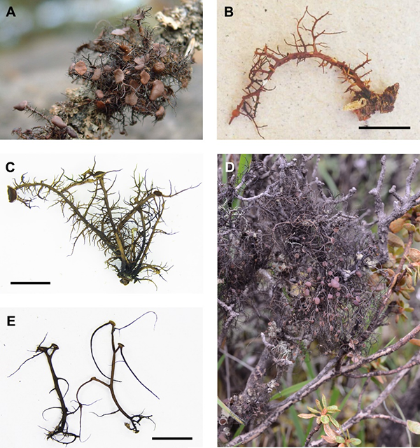图例:A.广开小孢发生于冷杉树枝以及具缘毛的子囊盘;B.采集于云南大理的广开小孢发主模式标本;C.广开小孢发丛生的地衣体、侧生小分枝和小刺;D.密枝小孢发生于密枝杜鹃灌木枝;E.密枝小孢发主模式标本。 主编王立松等人历经四十余年标本采集和文献积累,编研人员通力合作,将《中国地衣志 第五卷》在经典分类研究基础上,结合分子系统学研究手段,对物种进行了分类界定。他们与国内外同行交流讨论,通过模式互借、标本交换、数据共享,有效解决了疑难种的分类界定问题。编研过程中,他们发表了与本卷内容相关的成果论文20余篇,出版专著2部,其中包括发表新种15个,中国新记录属2个,中国新记录种2个,合并7种及种下分类单位,提升种1个,修订属1个。 截至目前,《中国地衣志》已出版6卷,整部《中国地衣志》或将出版超过20卷。 (中国科学院昆明植物研究所供图) (中国科技网 2023年10月13日) 来源:http://www.stdaily.com/index/kejixinwen/202310/58b23df20c164bc4b07e855a04842350.shtml#10006-weixin-1-52626-6b3bffd01fdde4900130bc5a2751b6d1 |