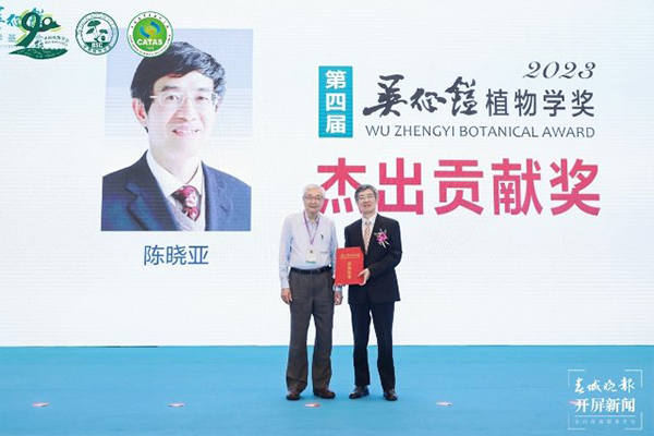 第四届吴征镒植物学奖杰出贡献奖获奖人为中国科学院院士、中国科学院分子植物科学卓越创新中心研究员陈晓亚;青年创新奖获奖人为中国科学院昆明植物研究所研究员黄胜雄、中国科学院植物研究所研究员王伟。中国植物学会名誉理事长许智宏院士、中国植物学会副理事长汪小全研究员和孙航研究员为获奖人颁发获奖证书和奖牌。