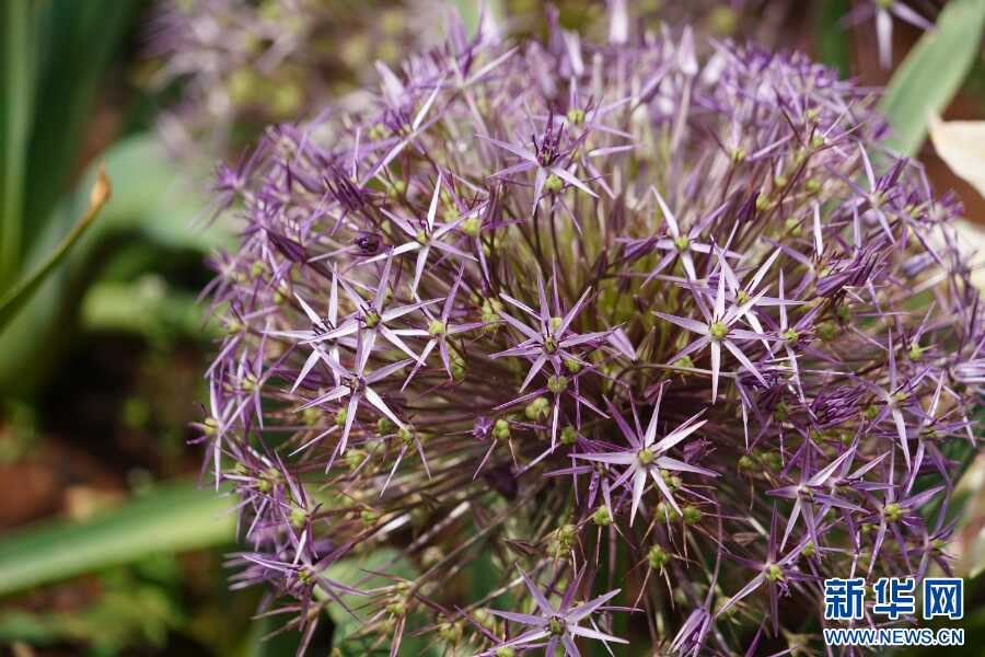 开放着紫色花朵的葱属植物(4月27日摄)。新华网发(曹霞 摄) 细长直立的花茎顶端,层叠次第开放的球形花序如繁星点点,吸引着蜂蝶沉醉期间,这些花序由密集细碎的小花簇拥而成,深深浅浅的紫,组成了浪漫的紫色风景线。