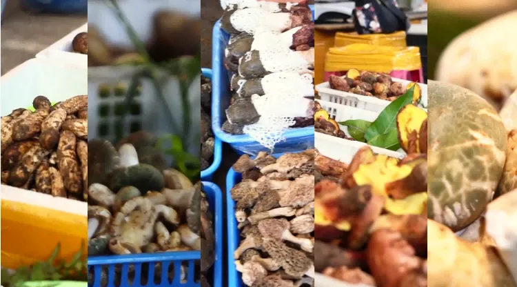 云南木水花野生菌交易市场。 雨季到来 野生菌大量上市 最近,云南一名男子 吃野生菌后中毒致幻 躺在病床上隔空抓物 称自己看到了凤凰、八爪鱼、水母、蜘蛛……