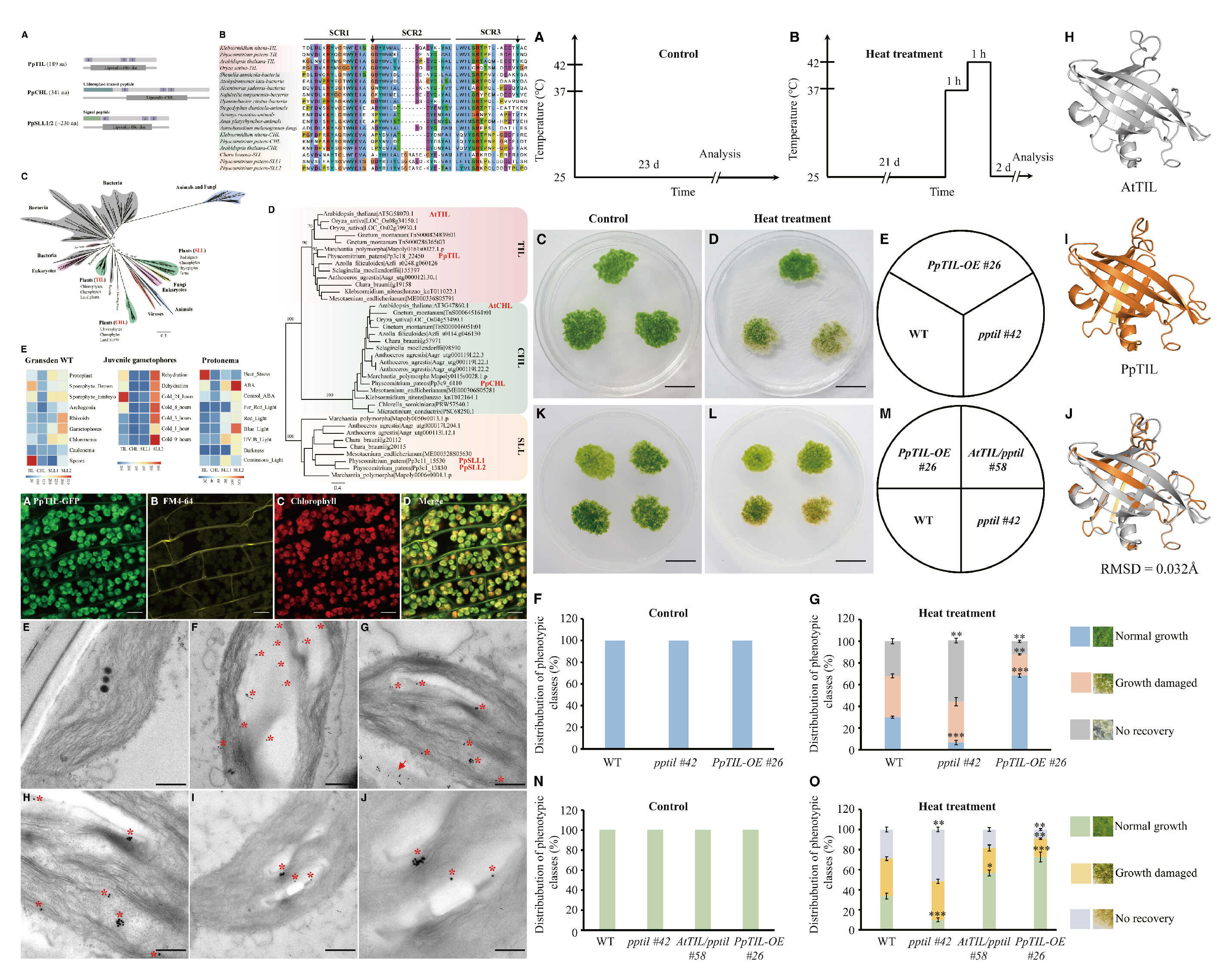 图1 TIL的系统发育分析和PpTIL的亚细胞定位及在非生物胁迫中的作用