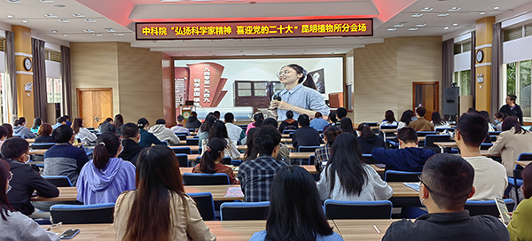 9月30日,中国科学院举办“弘扬科学家精神 喜迎党的二十大”在线活动。昆明植物所全所党员、青年职工、学生等收看了直播,共同了解院内重大科研成果,倾听奋斗故事,感悟科学家精神。 在做好常态化疫情防控前提下,昆明植物所开设视频分会场组织人员集中收看直播活动,大家观看了“国之大者”“国之传承”“国之重器”“国之榜样”等4个篇章以及“以老科学家命名的科技攻关突击队授旗、宣誓”“科学家报告和访谈”“中国科学院大科学装置连线”等,并参与了在线竞答和《我和我的祖国》合唱环节。 活动中展现的生动、翔实、珍贵的画面,回溯科学大家风范、讲述创新团队故事、呈现科技创新成果,活动展示了科技创新成果背后科技工作者们不忘初心、牢记使命、潜心科研的精神力量,展现出中科院科技工作者以实际行动迎接党的二十大胜利召开的良好风貌。活动精彩纷呈,感染了参与的每一位同志。更加坚定了广大科技人员把个人梦融入中国梦,把家国情怀转化为奋斗激情,做新时代的奋斗者,为实现高水平科技自立自强、加快建设世界科技强国贡献智慧和力量。 各党(总)支部也在实验室就近地点组织职工、研究生集中收看网络直播,或通过手机移动端参加线上活动。