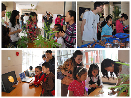 5月14日,中国科学院昆明植物研究所2011年度“公众科学日”活动分会场西南野生生物种质资源库开展了科普宣传活动。 西南野生生物种质资源库今年的活动主题是“保护种子,成就未来”。科普工作者通过展板介绍使公众了解种质库建设的历史、保藏种子的目的、种子保存对植物生物多样性保护的意义等;通过种子实物、萌发试验的小苗等多种形式让公众更多地关注全球气候变暖、生态环境恶化等问题,了解种质保藏在生物多样性保护和社会经济发展中重要战略意义,从而引导公众自觉加入到保护生物多样性的行列中去;科普工作人员以豆科的榼藤子(Entada phaseoloides(Linnaeus) Merrill)、紫葳科的木蝴蝶(Oroxylum indicum (Linnaeus) Bentham ex Kurz)、龙脑香科的坡垒一种(Hopea sp.)和木兰科的大果木莲(Manglietia grandis Hu & W. C. Cheng)等为例,对干果(Dry fruit)中的荚果(Legume)、蒴果(Capsule)、翅果(Samara)和蓇葖果(Follicle)等进行形态特征分析。科普工作人员通过对种子萌发过程的讲解,使公众了解种子萌发是为了检测种子活力,通过介绍萌发实验的操作过程、条件设置、基质的展示、萌发后小苗的处理等问题,使公众对于种子萌发的意义和过程有了深刻的认识和理解。 来自昆明学院、西南林业大学、云南农业大学、云南师范大学附属小学、商务信息学校等师生共310人参加了此次活动。