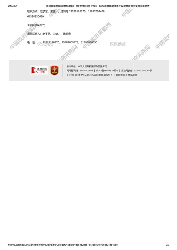 中国科学院昆明植物研究所(黑龙潭园区)2023、2024年度零星维修工程服务商询价采购询价公告