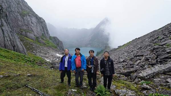 高黎贡山主峰嘎哇嘎普冰蚀湖初干错(邓涛摄) 为积极推进高黎贡山国家安全屏障体系建设,中国科学院昆明植物研究所所长孙航研究员带领“高原植物多样性保护和可持续利用”分队长李嵘研究员、“植物多样性变化调查”分队长邓涛研究员、黄先寒博士等骨干队员,联合高黎贡山国家级自然保护区贡山管护分局的孙军、和正军,共16人组成的科考队,于2021年7月12日-7月17日对高黎贡山主峰嘎哇嘎普冰蚀湖初干错(海拔4023米)及沿线的植物种类、物种分布、群落组成等进行了深入细致的考察。