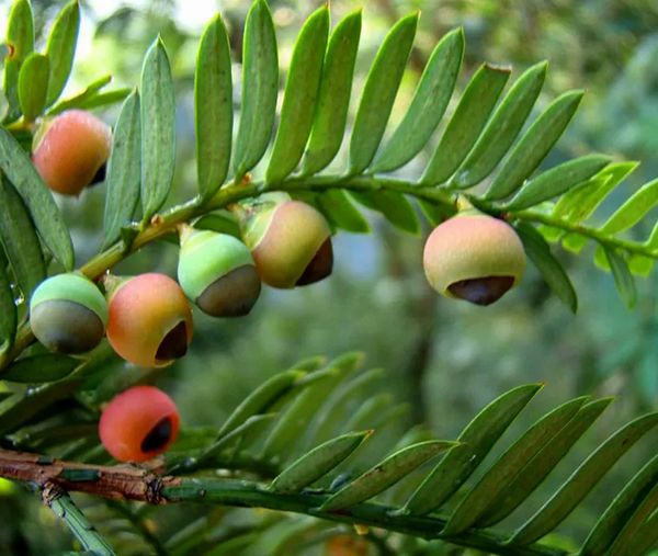 南方红豆杉不同成熟度的种子 南方红豆杉 (Taxus wallichiana var. mairei)为红豆杉科(Taxaceae)植物,是我国特有的一级保护植物,是第四纪冰期遗留下来的古老树种。 南方红豆杉的种子呈倒卵形,半包于杯状的假种皮中。该假种皮在未成熟时为绿色,且硬而涩,藏于枝头极难被发现。可当9-10月种子成熟,变为褐色或黑色后,假种皮就会由绿经黄,最后变成鲜艳的红色,与种子和树叶形成巨大反差,极易引起鸟儿的关注。此时的假种皮肉而多汁,酸甜可口,且富含糖、脂肪、蛋白质等多种营养物质,是鸟儿喜欢取食的对象。更为奇特的是,南方红豆杉的树皮和种子中含有毒性物质——紫杉醇,而假种皮中却没有,这是专门用来吸引鸟儿为它传播种子而准备的特殊礼物。 为了适应鸟播,南方红豆杉的种子进化出了硬而光滑、厚达0.32-0.54毫米的骨质外种皮,以保证种子被鸟儿吞食后,能抵御消化液的作用,安全通过其长长的消化道。此外,种子还进化出了形态生理休眠特性,保证其能顺利度过寒冷的冬天,只有待春天来临时,才萌发成苗,并顺利成长。 通过与鸟儿建立长期固定的合作关系,南方红豆杉得以从远古成功繁衍至今。