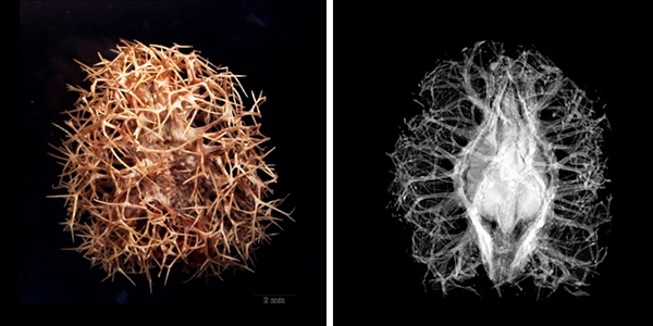 沙拐枣多刺的果实 沙拐枣(Calligonum mongolicum)是一种多分枝灌木,生长于我国内蒙古、甘肃、青海和新疆的各种沙丘、沙地、沙砾质荒漠和砾质荒漠的粗沙积聚处,是防风固沙的先锋植物,也是优良的薪炭材、蜜源植物和药用植物。另外由于其茎具节,节间短而弯折,且果实的形状和大小与枣子相似,故名“沙拐枣”。 沙拐枣植株生长1-2年即能结实,果实5-7月成熟,此时其长7.02-11.40毫米,宽5.10-9.24毫米,厚4.55-8.19毫米,由绿色变成了黄棕色,形状为圆球形或椭球形,表面密被顶端互相交错的柔软细刺,刺的基部稍扁,分离或联合,连着角质果皮表面,整个就为一刺球,这就是沙拐枣的散布体。沙拐枣果实的结构特点保证了其在散布后,不会立即被埋入沙中,而能在有风的情况下,在沙丘表面不断滚动,寻找适合自己萌发、生长的地方。另外,沙拐枣果实表面的刺还能有效防止动物的取食,并能挂在动物的毛发上被传播到远方,极好地适应干旱的荒漠环境。 沙拐枣的种子具有生理休眠,从而可以保证它在散布后有足够的时间去寻找“宜居地”,并能安全度过沙漠地区寒冷的冬季,在适合小苗生长的春季来临时,再萌发。