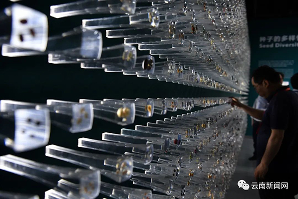 4月29日,中科院昆明植物研究所“扶荔宫”温室群内种子博物馆的种子墙。 本组图片 中新社记者 刘冉阳 摄