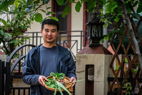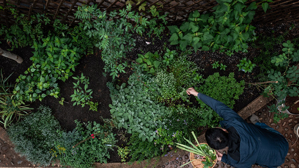 上官法智的花园一景。新华社记者 胡超 摄 打药、剪枝、施肥、杀虫、采摘、做菜,成了上官法智生活的一部分。在他的精心打理下,每个季节,都有植物吃。也正因为亲力亲为,当自己栽的植物上桌,他才会兴奋不已。 鲜花作衬,美味留香,爱植物的人也热爱生活。上官法智很感谢生物多样性带来的乐趣。