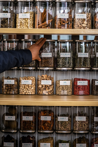 上官法智用甜叶菊等植物制作的饮料。新华社记者 胡超 摄 这是木姜子,贵州酸汤鱼的调料,它的果子、树皮和树根都能用来炖汤。