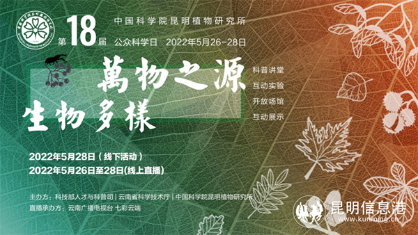 昆明信息港讯 《生物多样性公约》第十五次缔约方大会(COP15)第二阶段会议即将在昆明召开,为更好的向大众普及生物多样性知识,昆明植物所将于5月26-28日举办第十八届公众科学日暨全国科技活动周生物多样性轮值主场活动。 云南拥有从热带到寒温带的垂直气候带,自然生态系统丰富完整,是三个世界级的生物多样性热点地区的交汇区,生物物种异常丰富,蕴藏了中国约一半的植物物种,是中国生物多样性保护最关键的区域和重要的生态安全屏障。本次活动为期三天,以“万物之源 生物多样”为主题,将通过科普展览、科普报告、国家重点实验室开放、儿童绘画、小型森林音乐会等活动,为市民和游客呈现一场集视觉、触觉和听觉于一体的植物科普餮饕盛宴。
