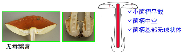 无毒鹅膏与剧毒鹅膏的形态特点 有毒鹅膏和无毒鹅膏在形态上有细微差别,无毒鹅膏小菌褶平截、菌柄中空、菌柄基部无球状体;而有毒鹅膏小菌褶渐细、菌柄实心、菌柄基部有球状体。 (人民日报客户端 2022年6月17日) 来源:https://wap.peopleapp.com/article/6747044/6618220 |