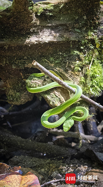 调查途中遇到的竹叶青 本底调查发现14个新物种 为更好地保护生物资源提供依据 在景区一带,马文章发现了很多让他觉得陌生的苔藓,“叫不出名字”。武夷山是苔藓调查的一个大本营,来来回回众多科研人员在这儿调查过,“理性上觉得可能性很小,但肯定还是期待能在这儿发现新种的。”马文章说。 为期一周的实地调查结束了,但他们的工作才刚刚开始。后续他们要对标本进行进一步观察和分析。几十年来,陆陆续续有苔藓研究者在这儿做过调查。这些数据,也是马文章这次调查的参照,“为什么会增加,为什么会减少?我要解释背后的原因是什么,是学名合并了?还是别的原因?”后续他们可能会回到武夷山进行补点调查。 马文章的目标是把调查做得尽可能丰满、充实,为后来的研究者提供一些一手数据。“别人看了以后,觉得还值得研究,那我们的调查就算是成功的”。 “苔藓是高等植物中的第二大类群,在群落演替中往往起先锋作用,有保持水土的功能。”武夷山国家公园管理局科技监测中心主任张惠光介绍,摸排苔藓植物,是国家公园本底资源调查的重要部分。 2020年4月,生物资源本底调查启动,由武夷山国家公园管理局科研监测中心组织,生态环境部南京环科所牵头,20多个高校院所100多位专家共同参与调查。除了常规的动物、植物,不起眼的苔藓,此前从未调查过的真菌,也在此次本底调查的范围内。