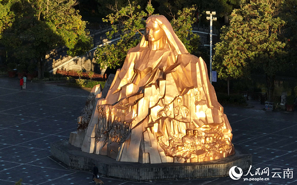 在云南保山腾冲的腾越文化广场上,矗立着一座高12.9米、长58.45米的雕塑——“高黎贡山母亲”。雕塑上部分是一位面容慈祥、端庄大方的女性,下部分为高黎贡山景观及古往今来各族群众生生不息的典型画面。