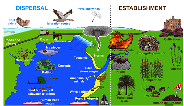 科技日报记者 赵汉斌 “扩散”一直是生物地理学和生态学的一个核心研究议题。在植物界,种子的扩散往往需要借助媒介完成,并且大多是短距离扩散,仅有约1%的扩散是长距离扩散。 记者从中国科学院昆明植物研究所了解到,该所李德铢团队新近的研究,阐明了植物长距离扩散后的拓殖机制,为应对全球变化下生物入侵、生物多样性丧失等重要问题提出了解决方案。相关研究综述近日发表在国际生态与进化领域期刊《生态学和进化趋势》上。