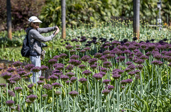 近日,昆明植物园中乌全球葱园(昆明中心)内的近十个品种、6000余株观赏葱属植物逐渐迎来盛花期,吸引游客前来观光。据了解,葱属植物具有重要的经济利用价值,许多种类被人类作为食用、药用和观赏植物进行了长期的栽培利用。