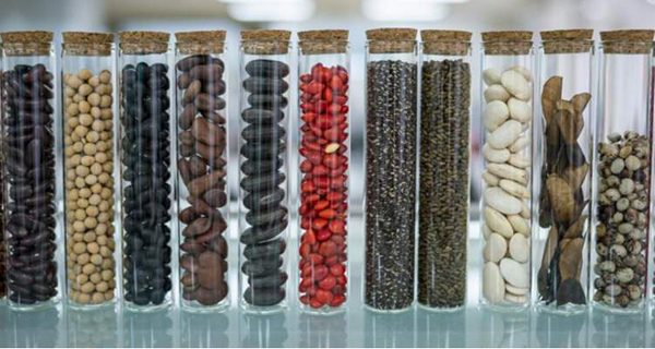 各式各样的种子陈设。 种质资源的保存是保护生物多样性的重要手段。中国科学院昆明植物研究所研究员李德铢说,种质资源的狭义概念是具有生命力或再生能力的遗传资源。中国西南野生生物种质资源库建成后,相当比例的珍稀濒危、特有物种的种子已经入库。当一个物种濒临灭绝时,我们就可以启用这些种质资源,使该物种的安全得到保障,从而保护生物多样性。