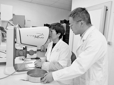 团队成员在做种子形态观察。张勇摄/光明图片