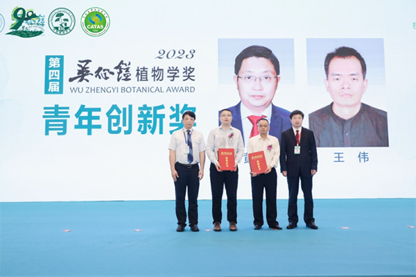 云南吴征镒科学基金会理事长、中国科学院昆明植物研究所党委书记李宏伟主持颁奖仪式。 第四届吴征镒植物学奖杰出贡献奖获奖人为中国科学院院士、中国科学院分子植物科学卓越创新中心研究员陈晓亚;青年创新奖获奖人为中国科学院昆明植物研究所研究员黄胜雄、中国科学院植物研究所研究员王伟。中国植物学会名誉理事长许智宏院士、中国植物学会副理事长汪小全研究员和孙航研究员为获奖人颁发获奖证书和奖牌。