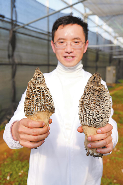 赵琪向记者展示航天育种的羊肚菌