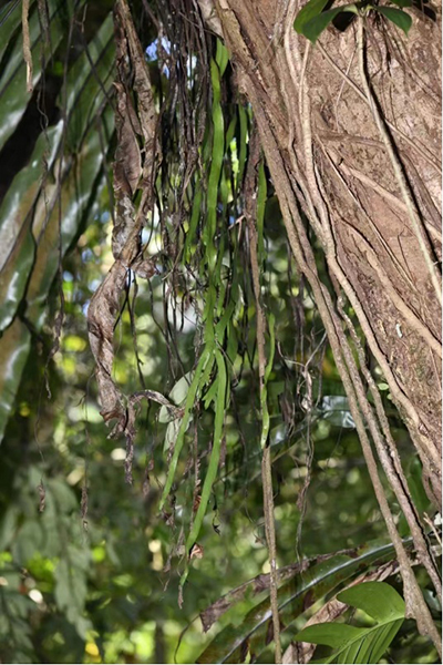 图片来源:中国科学院昆明植物研究所 带状瓶尔小草(Ophioderma pendulum (L.) C.Presl)为《国家重点保护野生植物名录》新增的国家二级保护野生植物,在中国海南、台湾及云南有分布记录,居群数量极少。其中,云南仅有1962年武素功先生在金平县采集的标本记录,之后的60年都未再见其踪影。 世界范围内,带状瓶尔小草主要分布于热带,亚洲、大洋洲及非洲部分地区的热带雨林及季风常绿阔叶林中,常附生于树干上。其肉质的叶片狭长如丝带,从树上垂下,与繁殖相关的孢子囊穗则直接从叶片上生出,甚为奇特,具有极高的观赏价值。 (人民日报 2024年1月2日) 来源:https://wap.peopleapp.com/article/7303989/7141553 |
