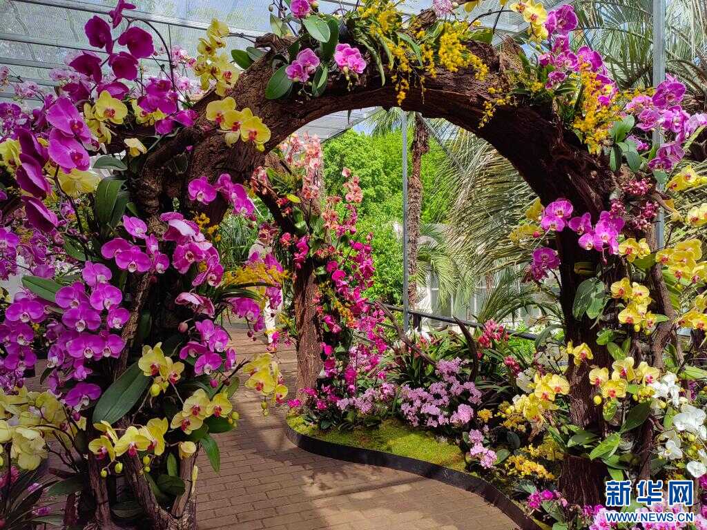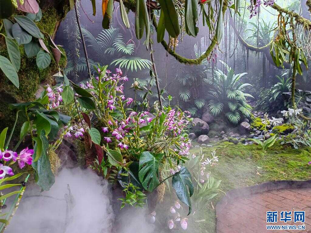 兰展现场。新华社记者 岳冉冉 摄 此次兰展以“兰野仙踪”与“童话秘境”为主题,将兰科植物的科学和艺术之美结合,展出近400种(含品种)兰花。展览由室内和室外两个展区组成。室内展区保持了兰花馆主馆“空谷幽兰”的景观效果,主要以原生种为主,展现迁地保育成果;室外展区结合“兰野仙踪”的主题,设立了生物多样性展区、兰花小船、主展区、兰花打卡点等区域,将童话风格和科学内容与硬叶兜兰、大魔鬼石斛巨型兰花小品融合,打造出一个兰花的科学童话世界。