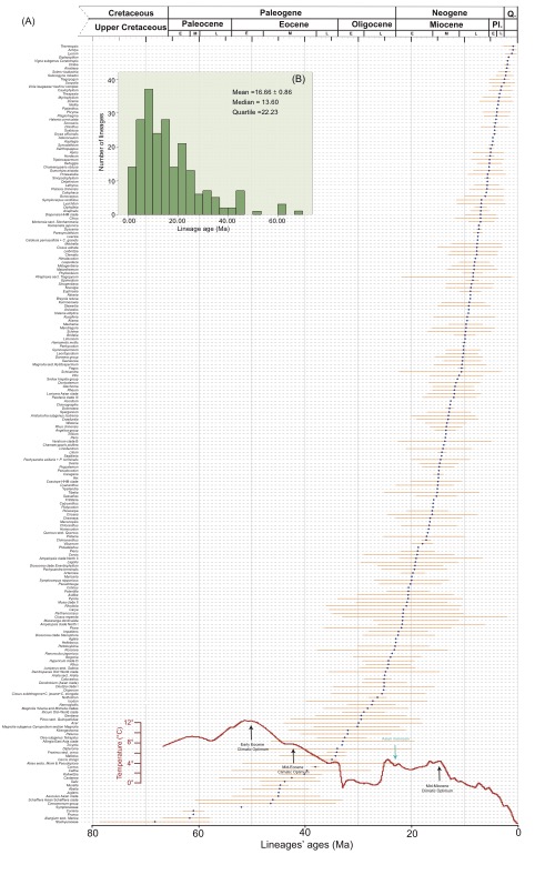 图3 东亚植物区系213个支系的起源时间分布图 (责任编辑:李雪) |