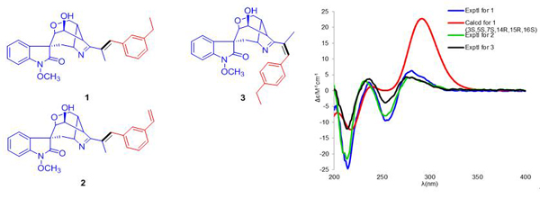 3.钩吻(Gelsemium elegans)别名断肠草,为著名的毒性中药材,民间多用于杀虫以及治疗皮肤溃疡,博士研究生魏鑫等从该药材中发现了钩吻定碱与C9结构单元杂合而成的新骨架吲哚生物碱Gelselegandines A-C,该类化合物仅显示了较弱的抗菌活性,研究成果以“Antimicrobial indole alkaloids with adductive C9 aromatic unit from Gelsemium elegans”为题发表在Tetrahedron Letters(2018, 59, 2066)上。