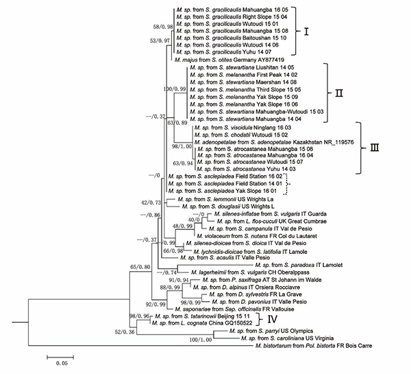 图1. 基于ITS序列构建的花药黑粉菌系统发育树