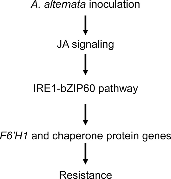图1. UPR参与植物抵御链格孢菌过程的模式图 |