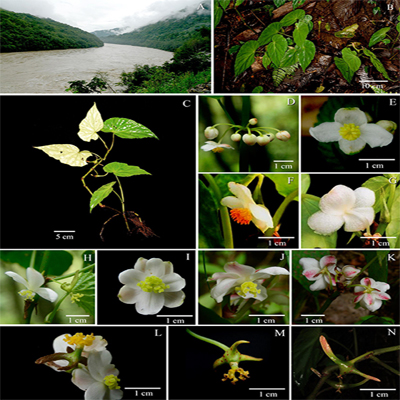 秋海棠属(Begonia)隶属于秋海棠科(Begoniaceae),多年生肉质草本,极稀亚灌木。该类群植物花朵鲜艳美丽,体态多姿,花期较长,易于栽培,长期以来作园艺和美化庭院的观赏植物。少数种类可供药用。 中国科学院昆明植物研究所植物经典分类与植物多样性团队税玉民研究组在西藏东南部的墨脱县采集到了一株长茎,卵状披针形叶,果为浆果的未知秋海棠,经研究确定为一新种,即Begonia pseudoheydei Y.M. Shui & W.H. Chen(图1)。该种在亚洲的秋海棠类群中较为独特,但与中美洲的已知秋海棠(Begonia heydei)具有相似的形态特征(图2)。该新种广泛分布于墨脱县,但种群规模小,已至濒危。 该成果以“A new berry-fruited species of Begonia (Begoniaceae) from Xizang (Tibet) in China, and its morphological homoplasy with Begonia heydei from Central America”为题发表在植物分类学期刊Phytotaxa上(https://doi.org/10.11646/phytotaxa.407.1.5)。 该研究得到国家自然科学基金项目(Grant No. 31770251, 31620103902和31370228)、科技部科技基础性工作专项(Grant No. 2013FY112100)以及国家科技设施和信息基础设施建设重点项目:国家标本信息基础设施(2005DCA24000)和中国科学院国际合作项目(Grant No. 151111KYSB20170021)的支持。