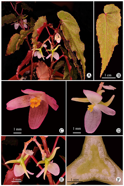 图1 Begonia pseudoheydei Y.M. Shui & W.H. Chen, sp. nov.