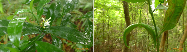 药用狗牙花Tabernaemontana bovina和海南狗牙花T. bufalina 研究团队对药用狗牙花(Tabernaemontana bovina)进行系统的生物碱成分研究。博士研究生吴静采用HPLC-UV导向分离,从其茎中发现4个独特共轭系统的单萜喹啉生物碱taberbovines A-D,具有6/6/5/6/5环系的结构特征(图1)。该类生物碱的结构通过核磁共振、X-单晶衍射、计算圆二色谱和核磁共振谱等确定,并对其可能的生源途径进行推测(图2)。该研究成果以“Four yellow monoterpenoid quinoline alkaloids from the stems of Tabernaemontana bovina”为题发表在Organic Letters(2019, 21, 4554-4558)上。