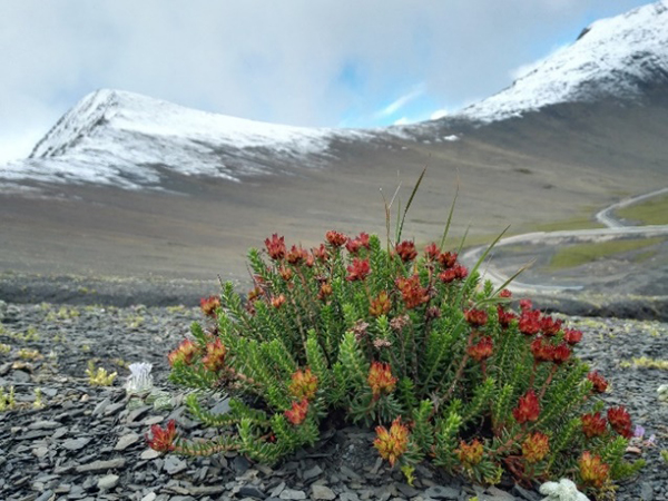 “第二次青藏高原综合科学考察”完成藏北羌塘高原冰缘带植物调查 文章来源:中国科学院东亚植物多样性与生物地理学重点实验室 | 发布时间:2019-09-12 | 作者:张永增,乐霁培 | 浏览次数: | 【打印】 【关闭】 青藏高原由一系列巨大的山系、高原面、宽谷和湖盆组成,自然环境复杂,地形地貌多样。西藏南部地区拥有干热河谷灌丛、森林、高山灌丛、高山草甸、冰缘带植被等植被类型,由低到高构成了典型的山体植被结构,而北部平均海拔超过4千米,仅剩大量的高山草甸和半荒漠化流石滩、冰川相融(图一)。而冰缘带是指位于高山草甸之上,永久雪线以下的植被带,是陆地生态系统中海拔最高的生境。由于太阳辐射强烈,温度变化剧烈,土壤基质贫乏,是绝大多数动植物的分布禁区,仅有少数具备特殊生物学特性的物种才能在此生存。同时冰缘带植物无法如低海拔植物一样,可以通过昆虫、鸟类、动物或风进行传粉和种子扩散,容易形成独特的“天空岛”植被景观(图二)。在当今全球气候变暖的背景下,冰缘带生长的物种由于生存空间被压缩,存在较大的灭绝风险,因而研究冰缘带植物对了解环境变化对物种多样性的影响有着重要的意义。藏北的植被类型特点及多样性,特别是冰缘带植物有何特殊性,对全球环境变化的响应等问题,是此次考察的重点。