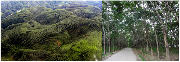 图 1 云南植胶区山地胶园鸟瞰图及完成了基因组测序的橡胶树 GT1 品种
