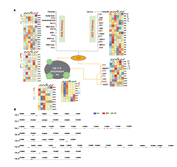 昆明植物所获得首个染色体级别的橡胶树参考基因组图谱并揭示大戟植物基因组的染色体进化、胶乳生物合成与橡胶树的驯化 文章来源:中国西南野生生物种质资源库 | 发布时间:2019-12-16 | 作者:高立志 | 浏览次数: | 【打印】 【关闭】 橡胶树(Hevea brasiliensis (Willd. ex A. Juss.) Muell. Arg. )是大戟科(Euphorbiaceae)植物。在植物界大约2,500种产胶植物中(如杜仲Eucommia ulmoides Oliver和橡胶草 Taraxacum kok-saghyz Rodin等),橡胶树产生的以聚异戊二烯为主要功能成分的天然胶乳约占全球天然橡胶的 98% 以上。比起造成巨大环境污染的人工合成橡胶产业,天然橡胶因其良好的弹性、伸展性、耐老化等综合理化性能而具有不可替代性,是任何国家必须具备的重要战略物资。 橡胶树原产南美洲巴西的亚马逊河流域,历史记载其驯化始于1896 年,然后向马来西亚、印度尼西亚和泰国等南亚国家传播。新中国宣告成立后,为了打破帝国主义对新中国的封锁,国家决定在我国南方地区开展橡胶宜林地综合考察,独立自主地发展民族橡胶产业。中国科学院吴征镒院士、罗宗洛院士和李庆逵院士等一大批植物地理学家、植物生理学家、生态学家和土壤学家受命橡胶宜林地综合考察,提出了结合我国实际种植橡胶的可行性建议,为我国在北纬18°-24° 地区成功种植橡胶做出了重要贡献(“橡胶在北纬18°-24° 大面积种植技术”获得国家技术发明一等奖)。从此,我国天然橡胶种植从无到有、走过了百余年的历史。 亚洲占全球天然橡胶种植面积的90%,我国的橡胶种植面积达114万公顷,居亚洲第三位(仅次于印度尼西亚和马来西亚)。从二十一世纪初起,云南的橡胶树种植总面积、总产量和单位面积产量均居中国首位,云南已成为我国面积最大、种植最好的天然橡胶生产基地。目前,我国天然橡胶年产量不足年消费量的20%,远低于国际公认的安全保障线(30%)。巴西橡胶树的种质资源与基因组学研究是国际上竞争激烈的热点领域;在2013-2016年期间,马来西亚、泰国和中国的研究团队利用二代或者二代与三代测序杂合组装技术共发表了4张橡胶树的基因组草图。然而,大戟科植物基因组的染色体如何进化、为什么橡胶树能高产胶乳以及橡胶树在近一个世纪如何被驯化等是产胶植物研究中长期悬而未决的重大科学问题;橡胶树的高产、抗病、抗旱、抗寒等重要经济性状的基因组选择育种与优异基因资源的发掘利用也亟需获得达到染色体级别的高质量橡胶树参考基因组图谱。 热带作物种质资源与基因组学云南省创新团队首席科学家高立志教授带领的云南省热带作物科学研究所、中国科学院昆明植物研究所和华南农业大学基因组学与生物信息学研究中心的联合研究团队,历经 6 年,与华大基因、美国华盛顿大学、哈佛大学等单位合作,在完成了二代基因组测序与组装的基础上,进一步克服了橡胶树基因组庞大、高杂合与高重复等困难,利用单分子实时测序(SMRT)和 Hi-C 技术,在国际上首次获得了达到染色体级别的高质量巴西橡胶树优良品种 GT1的参考基因组序列。与以前发表的基因组草图比较基因组学分析表明,该研究获得的基因组图谱在组装准确性与完整性上都得到了极大的提升;将组装获得的约 1.47 Gb 的基因组序列挂载到了 18 条假染色体上;研究进一步证实,在木薯属与橡胶属分化之前二者共同的祖先里发生过古多倍化事件;通过染色体水平上的比较基因组学分析首次构建了大戟植物的染色体演化模型;通过对该高质量的橡胶树参考基因组序列的分析发现,在与木薯分化之后,橡胶树基因组在最近的一千万年以来有三个LTR逆转录转座子家族发生了快速爆发,使得橡胶树基因组增大了890 Mbp (约 60.44%);该研究鉴定得到与整个胶乳生物合成相关基因家族并解析了胶乳生物合成途径及重要基因的表达式样,发现与基础代谢过程、乙烯生物合成以及与乳胶停排相关的多糖和糖蛋白凝集素活动相关基因的显著扩张;该研究最后还构建了第一张代表性野生和栽培橡胶树的基因组变异精准图谱,获得约1,570万个高质量的SNPs。尽管橡胶树仅有一个多世纪的的驯化历史,该研究鉴定到数百个与驯化相关的候选基因,它们在栽培橡胶树中比起野生橡胶树具有极低的基因组多样性,其中有些基因与胶乳的生物合成密切相关。巴西橡胶树这一重要参考基因组的获得、胶乳生物合成代谢通路的解析、栽培和野生橡胶树基因组变异精准图谱的构建以及栽培橡胶树驯化的认识,对我国未来橡胶优异种质资源的保护、发掘与育种利用具有重要的战略意义。 该成果以 “The Chromosome-based Rubber Tree Genome Provides New Insights into Spurge Genome Evolution and Rubber Biosynthesis ” 为题发表在国际植物学顶尖刊物 Molecular Plant 。该项目获得了热带作物种质资源与基因组学云南省创新团队等项目的支持。