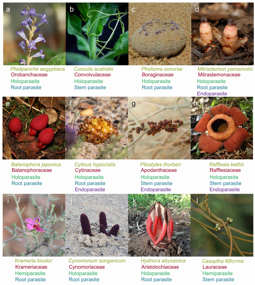 菟丝子作为典型的茎寄生植物,通过特化器官“吸器”与寄主建立维管连接。这一结构不仅是其获取水分和养分的“生命线”,还是菟丝子和寄主间以及不同寄主植物通过菟丝子传递信号与大分子的“天然桥梁”。由菟丝子和寄主组成的系统是研究植物间长距离通讯和互作机制的理想模型。 近日,中国科学院昆明植物研究所植物与其他生物互作专题组应邀在Plant and Cell Physiology发表题为Interplant signal transduction between dodder (Cuscuta) and their hosts(菟丝子与寄主植物间的信号传递)的综述论文。该论文系统梳理了菟丝子与寄主通过吸器实现的系统性信号传递及大分子物质交换研究进展,既总结了近年来该领域的关键发现,又结合专题组自身研究积累,明确提出未来研究方向与核心挑战,为寄生植物与寄主互作研究提供重要参考。 近年来的研究表明,菟丝子能高效介导多种系统性信号在相连的不同寄主间传递,赋予植物集群“协同抗逆”能力。当一侧寄主遭受昆虫取食时,防御信号可沿菟丝子快速传递至另一侧未受害寄主,提前激活其抗虫防御通路;类似地,盐胁迫、氮磷等养分胁迫,乃至高光胁迫引发的系统性信号,都能通过菟丝子在寄主间传递—这些信号不仅能调控寄主的抗逆性,还能优化其营养吸收效率,帮助植物集群更好地适应复杂环境变化。 除小分子信号外,菟丝子与寄主间还存在大规模mRNA、小 RNA(sRNA)及蛋白质的双向转运,成为两者长期进化互作的重要证据。研究发现,数千种 mRNA 可在寄主与菟丝子间交换,虽总丰度通常低于1%,但为跨物种基因表达调控提供了可能;菟丝子还能向寄主传递小RNA,精准靶向寄主免疫及发育相关基因,削弱寄主防御以促进自身寄生;更值得关注的是,数百至上千种蛋白质可在两者间迁移,部分蛋白质在接收植物中仍保持较高丰度与生物活性。其中,寄主的开花调控蛋白FT(Flowering Locus T,成花素)的转运机制尤为关键,该蛋白在寄生表达后,可移动至菟丝子体内,与菟丝子的FD蛋白结合,调控菟丝子的开花时间,最终实现菟丝子与寄主开花同步。这一“信号窃听”机制,恰好与菟丝子进化中丢失部分开花相关基因的现象相契合,体现了其高度特化的寄生适应策略,暗示寄生植物与寄主在长期共存中,可能通过物质转运实现某些对寄主的适应性。 尽管当前研究已证实菟丝子与寄主间存在广泛的信号及大分子交换,但仍有诸多科学问题待解:多数系统性信号分子的化学本质尚未明确,其识别机制与功能解析仍是核心研究重点;半寄生植物(如松蒿)仅通过木质部与寄主连接,其信号传递机制是否与菟丝子存在差异,也需进一步探索。值得期待的是,随着菟丝子及其它寄生植物遗传转化体系的建立,以及多个寄生植物高质量基因组的发布,科研人员已拥有更有力的工具,为深入挖掘寄生植物与寄主互作的分子机制奠定基础。 该综述不仅系统整合了菟丝子介导植物间信号与大分子传递的研究现状,还总结了专题组以及国内外科研机构在盐胁迫信号调控、氮磷信号传递、功能蛋白质转运等方向的研究进展,为理解寄生植物的生态适应策略及植物间复杂互作关系提供了重要参考。 昆明植物研究所助理研究员张井雄、副研究员申国境为论文共同第一作者,崔松岿研究员、王文韬副研究员参与了本综述的工作,吴建强研究员为通讯作者。研究得到国家自然科学基金、云南省“兴滇英才支持计划”(“云岭学者”“青年项目”)、云南省基础研究项目、中国科学院“西部之光”项目等资助。